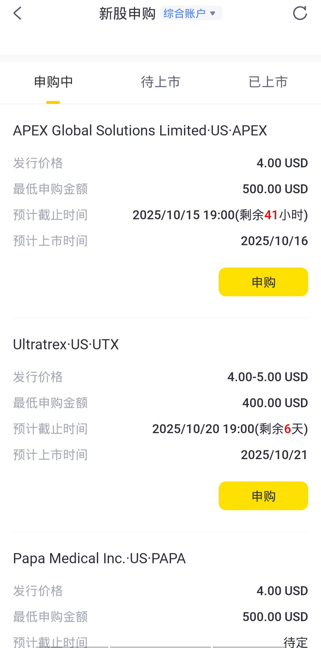结果晚上看,又延期了. 上面图里的3只都是延期过一次的美股.一般没人要募集不到资金的股票, 就会延期. 看到这种延期的,等于给了你一个逃生的机会,果断撤销之前的申购不要它了. 下面那个Papa Medical,影响中已经延期了几个月了,依然还没上市.... 只好远离之