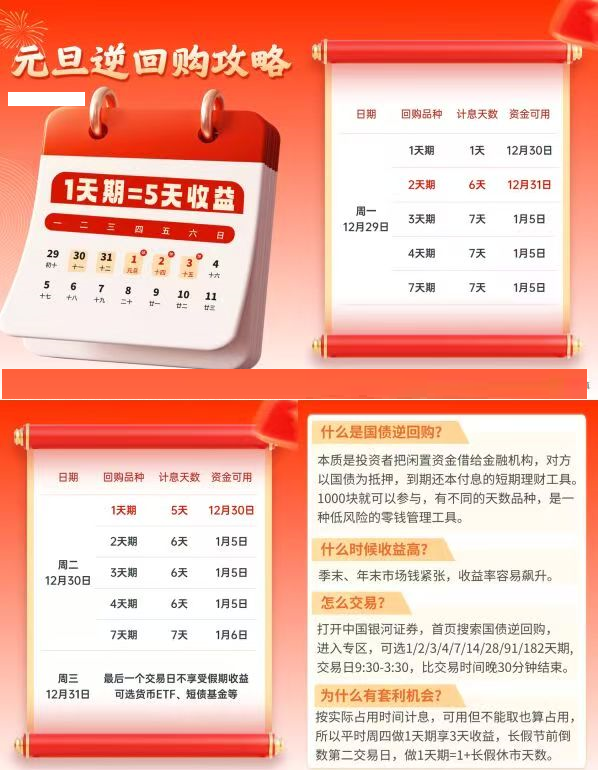 马上元旦了,年终逆回购超划算版理财攻略:
