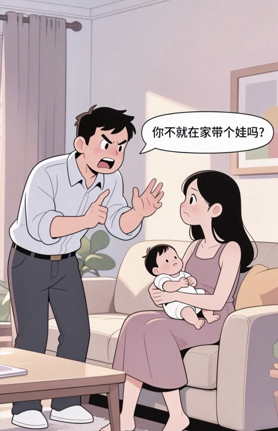 好不容易熬到等2个娃都上学后,就开始责怪你一大堆时间任由你荒废,不就是在家带个娃吗?不就是接个孩子吗 ,你看谁谁家的媳妇 ,生完娃就上班,多有事业心,你呢,又没事业心,身材又走样!好心你减肥啦!