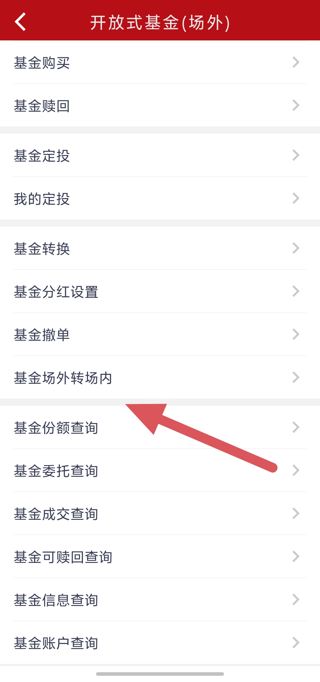 等T+2到账后,同样在上面图里面开放式基金(场外)里面, 选择场外转场内.
